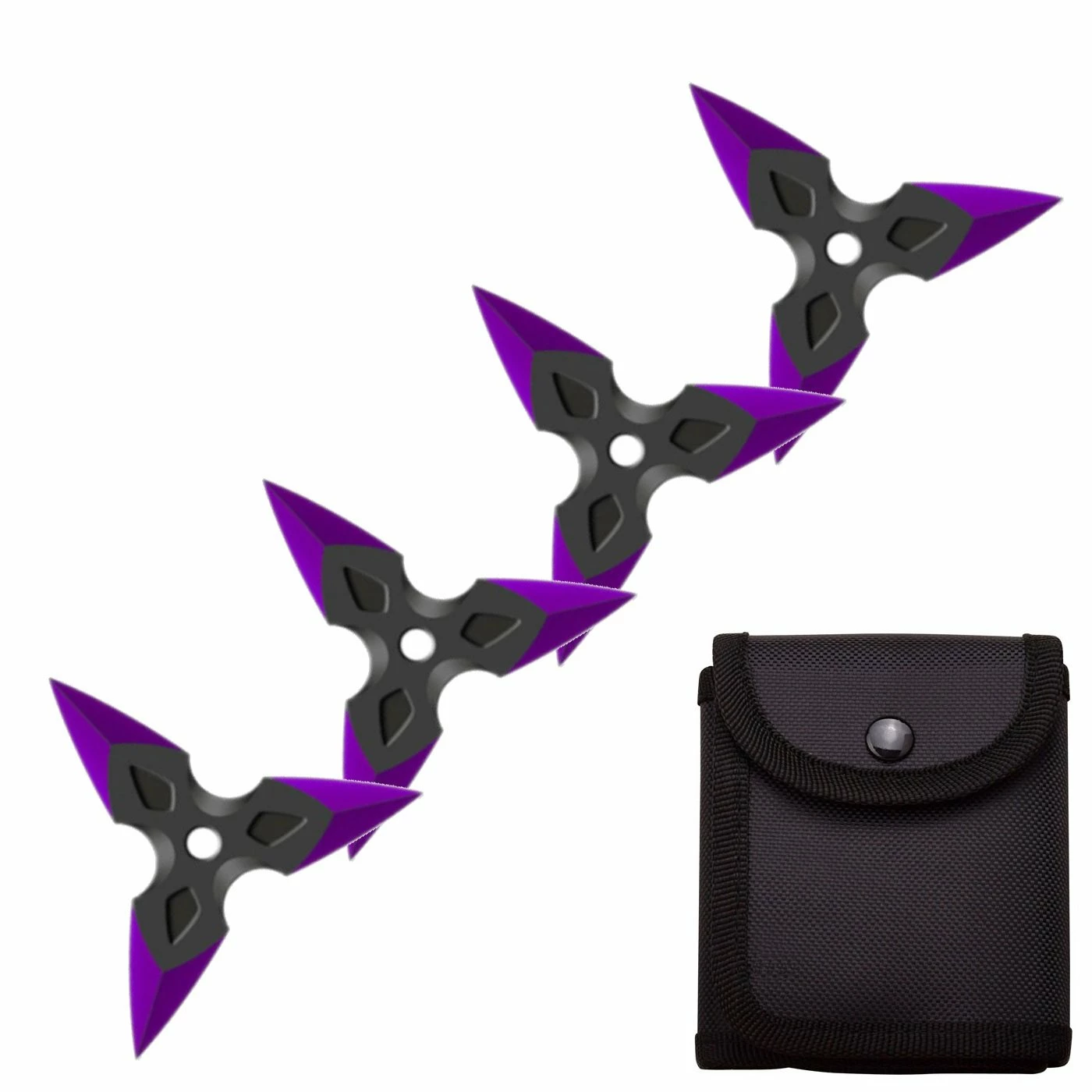 The incredible three point Black/Purple finish triangle throwing star is made from heavy, high grade stainless steel. This ninja star is forged and sharpened to have greater mass and supreme balance. This allows the three point shiruken to stick to targets in a deadlier fashion than smaller or lighter throwing stars.