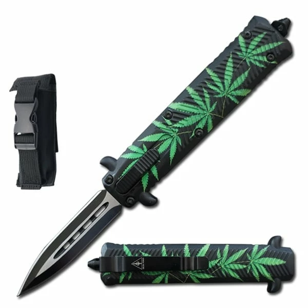 This 7″ Italian Style OTF model features a two tone, black and satin finished spear point blade. Get the best of both worlds with the Stiletto OTF automatic. This knife brilliantly combines the classic style of an Italian stiletto and the tactical speed of an OTF. A front loaded thumb slide fires and retracts the blade with smooth automatic precision. A steel pocket clip and handy emergency glass breaker are featured on the handle. Overall Length 7 inches with Handle Length of 4.15 inches. Includes FREE Nylon Pouch with Belt Loop.