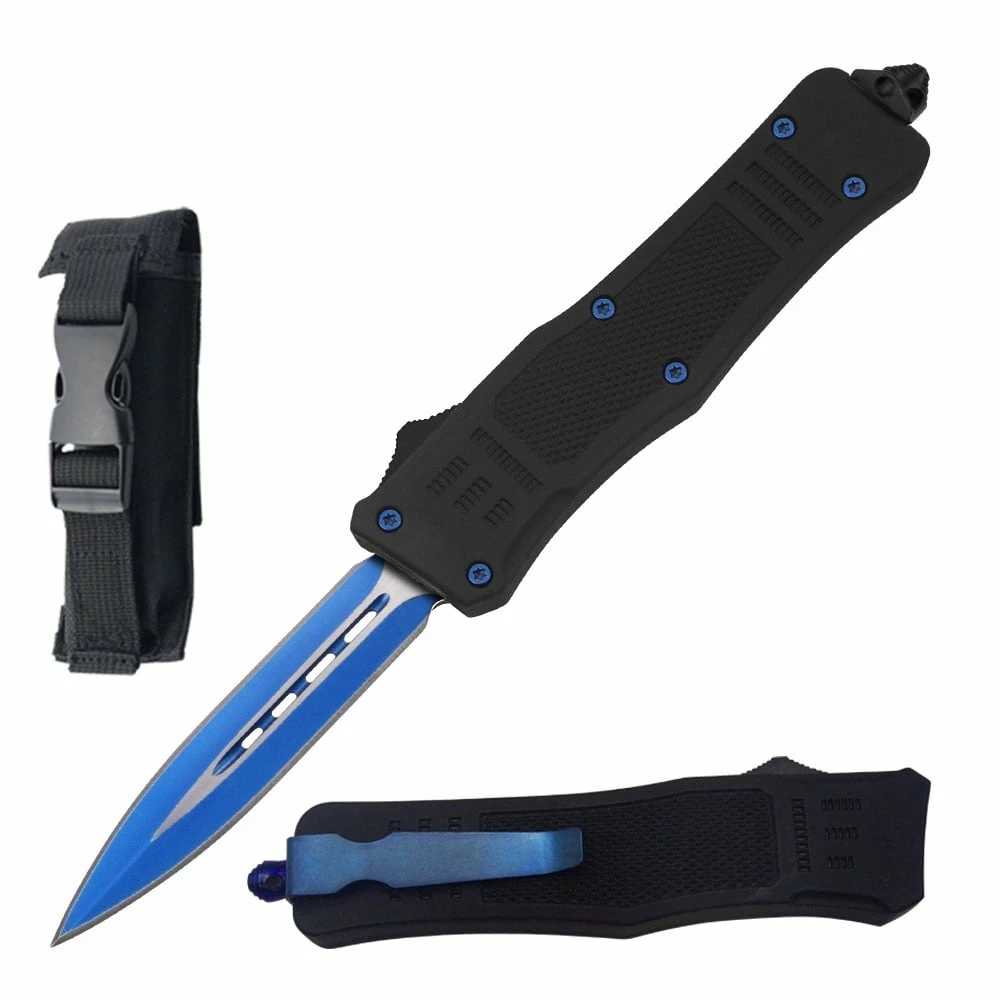 This knife is all tactical with a little bit of extravagance with its blue accents. This blade comes with a smooth alloy handle with a rubberized texture. Gliding your thumb over it just feels nice. The blue accents include six Torx screws holding the handle together with a glass breaker and pocket clip. The glass breaker is a great tool to have for emergency situations where a window may need to be broken.