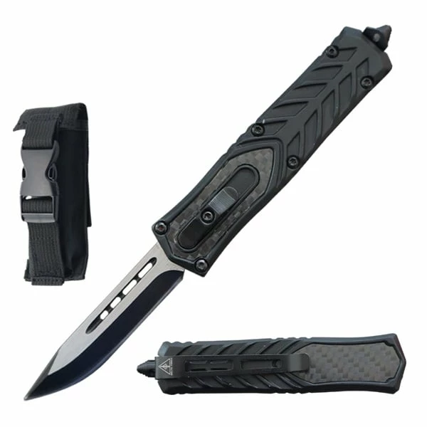 A steel pocket clip and handy emergency glass breaker are featured on the handle. Overall Length 9 inches with Handle Length of 5.5 inches. The tactical sheath is made from nylon with a plastic clip an easy detachable Velcro belt loop.