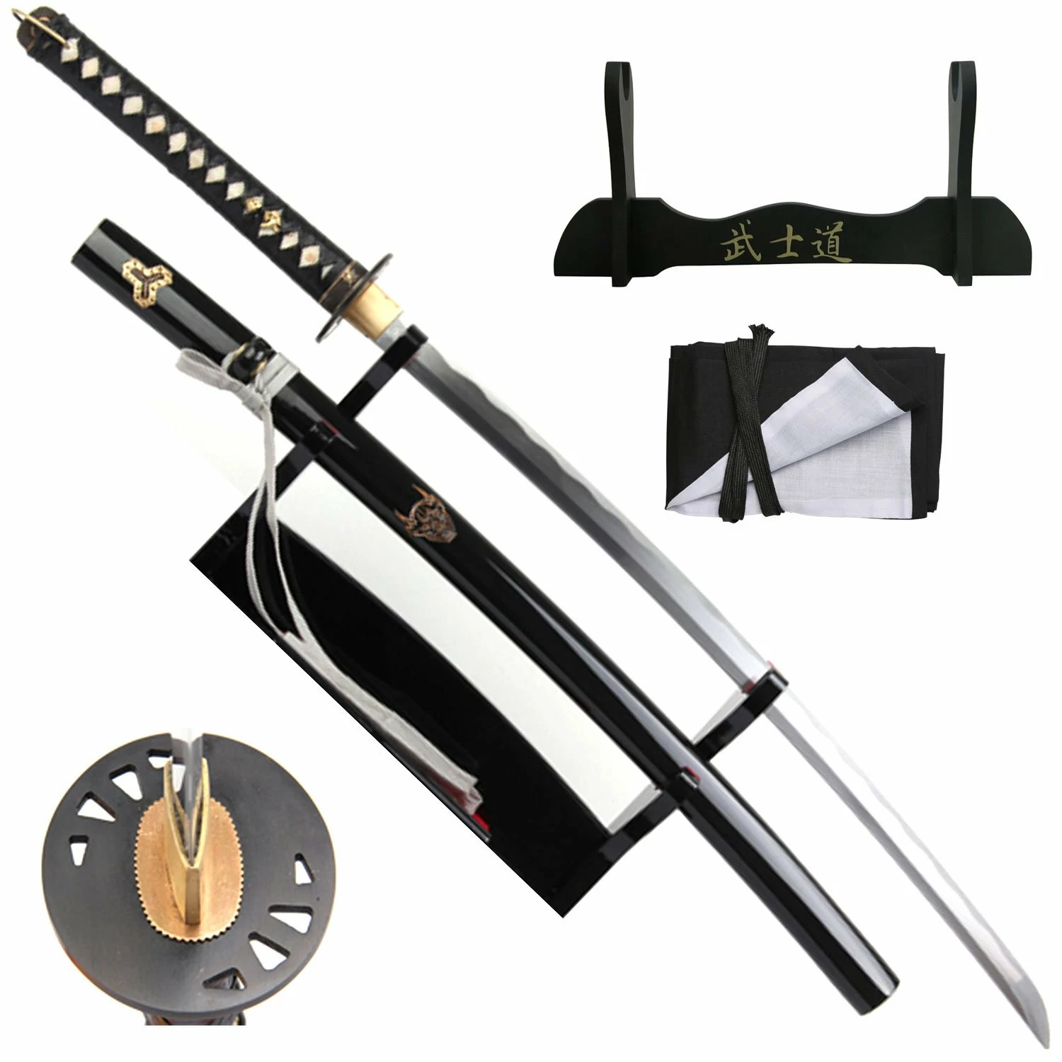 This is the Hattori Hanzo Demon sword you have been waiting for Fully functional and accurate to the movie Hand forged full tang Demon sword from Kill Bill. The blade, made of high carbon steel, sports the genuine insignia on the tang. The Kill Bill Demon Emblem is engraved on one side of the blade. The handle is wrapped in black cotton braid (ITO). On each side of the handle there is a dragon Munuki (Ornament), with the same design as in Kill Bill. The scabbard (Saya) is of high quality hardwood with piano finish exterior and 2 Demon emblems are engraved on the Fuchi (Collar).Â
